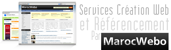 Notre agence Marocwebo Vous propose un service professionnelle de création site web : Création site Internet Maroc statique ou bien dynamique (PHP/Mysql), Création site E-commerce (Commerce électronique), Création de portail web : (portail d’actualité,  portail de petites annonces, …), Création des solutions immobilières : site dynamique pour une agence immobilières.MarocWebo crée des sites internet uniques et professionnel avec les dernières Technologies du Web (Web 2.0, Ajax, CSS, XHTML, PHP5, XML, Flash…), Sites Internet faciles à utiliser et optimisés pour les moteurs de recherche : Référencement optimisé.